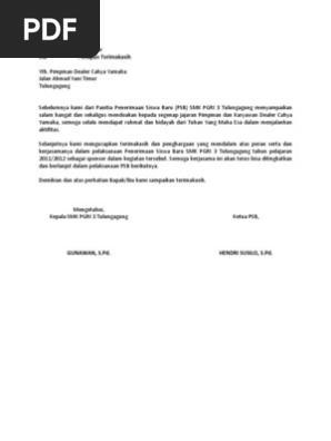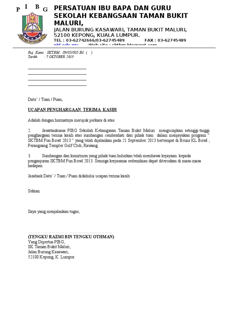 Surat rasmi terima kasih contoh rumah xy. Salam sejahtera dalam kasih yesus kristus. PERKUMPULAN PEMUDA PEMERSATU BANGSA KOTA MAGELANG.